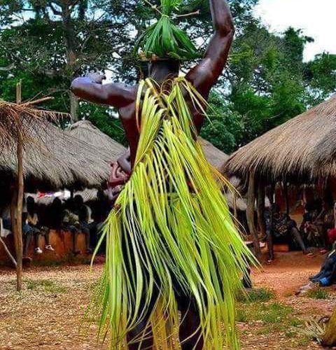 Ogun dresses himself with new leaves from the Igí Ọ̀pẹ (the sacred oil palm tree), whose name is Màrìwò.